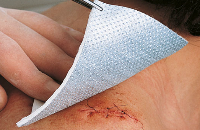 Vlies-Schlitzkompressen zur äußeren Wundversorgung von sezernierenden, verunreinigten Wunden in Ambulanz und auf Station.